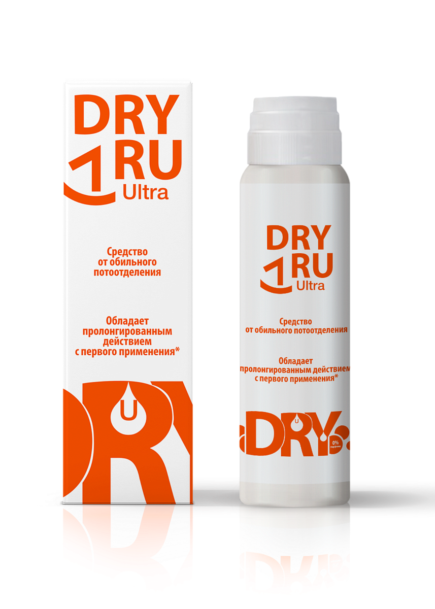 Средство DRY RU Ultra надежно помогает при нормальном потоотделении, чрезмерном потоотделении (гипергидрозе), а также в стрессовых ситуациях. Средство рекомендовано к использованию в области подмышечных впадин, на ладонях и ступнях. Одного флакона хватает в среднем на 10 месяцев.